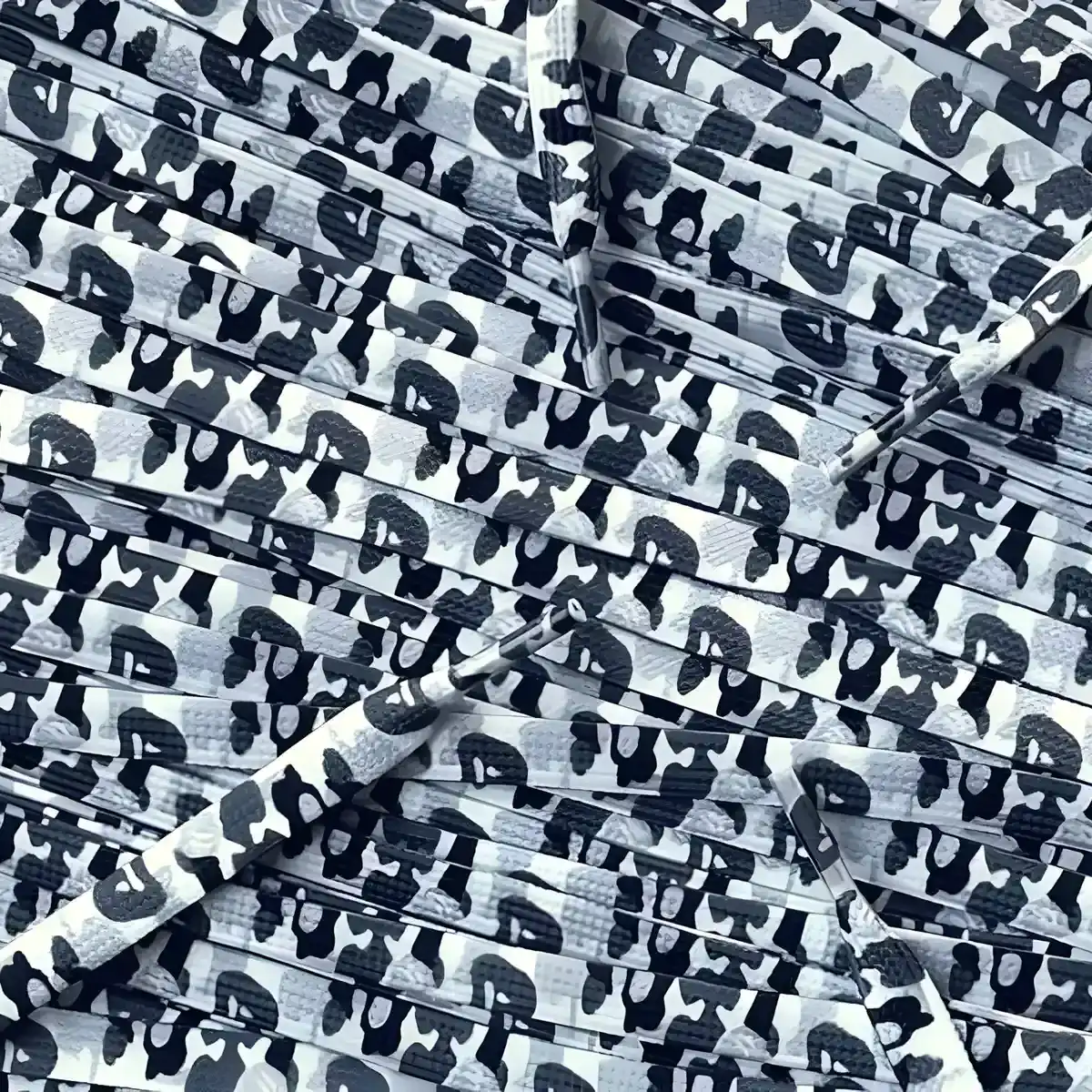 Grey Bape laces give your sneakers a striking, trendy look. This grey shade adds timeless, personalized style to any shoe. The high quality of these laces ensures a perfect fit and durability. Explore our collection of print laces for even more colors and variations.