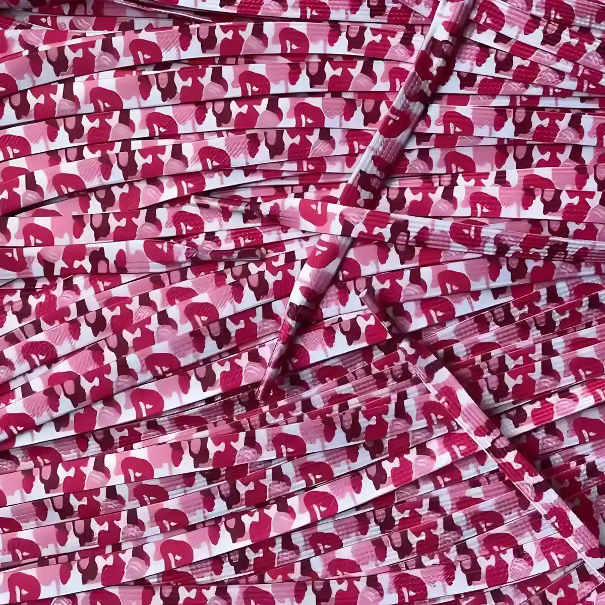 Pink Bape laces give your sneakers a new look. This pink hue creates a unique and vibrant style. The laces combine durability with a perfect fit for everyday use. Explore the character of printed laces in our extensive collection at print laces.
