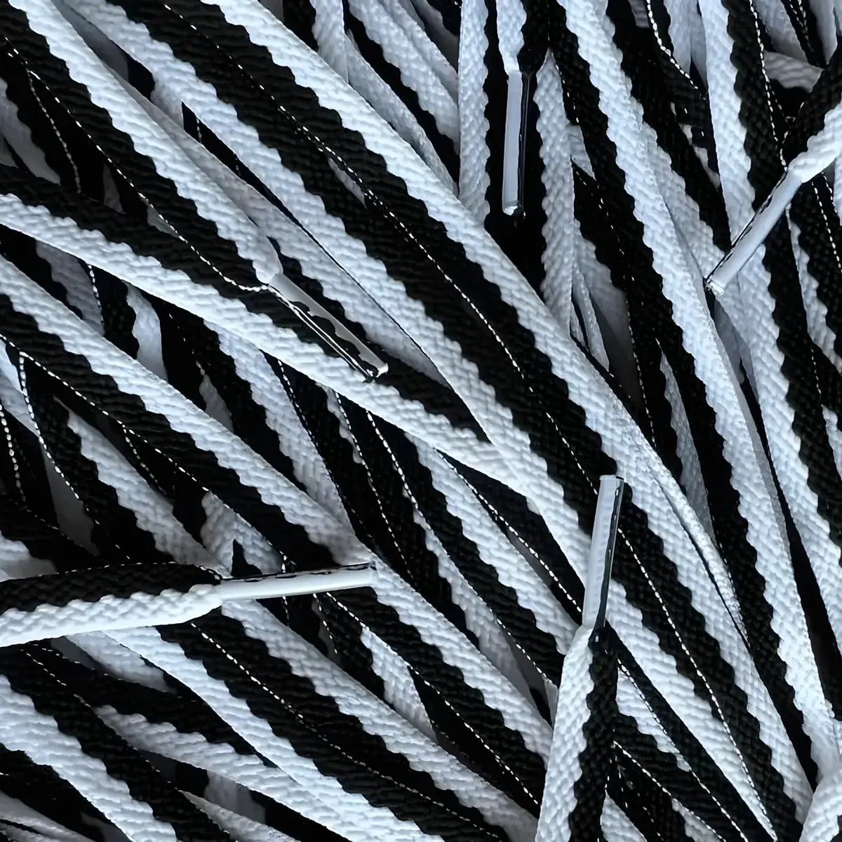Enhance your footwear with these black and white shoelaces, designed for a perfect fit. Crafted from a blend of cotton and polyester, this type of laces offers both durability and style.