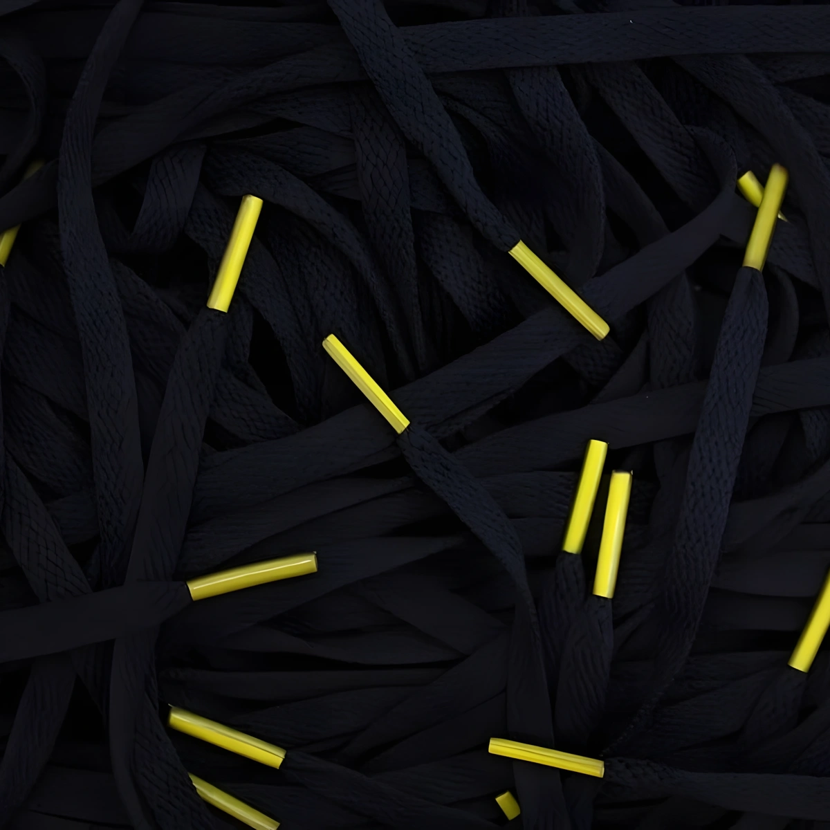 Zwart gele custom veters trekken direct alle aandacht naar je schoenen. Deze kleurcombinatie zorgt voor een opvallende en energieke uitstraling. De custom veters zijn perfect om je persoonlijke stijl krachtig te benadrukken. Ontdek meer variaties en stijlen in onze custom veters voor eindeloze mogelijkheden.
