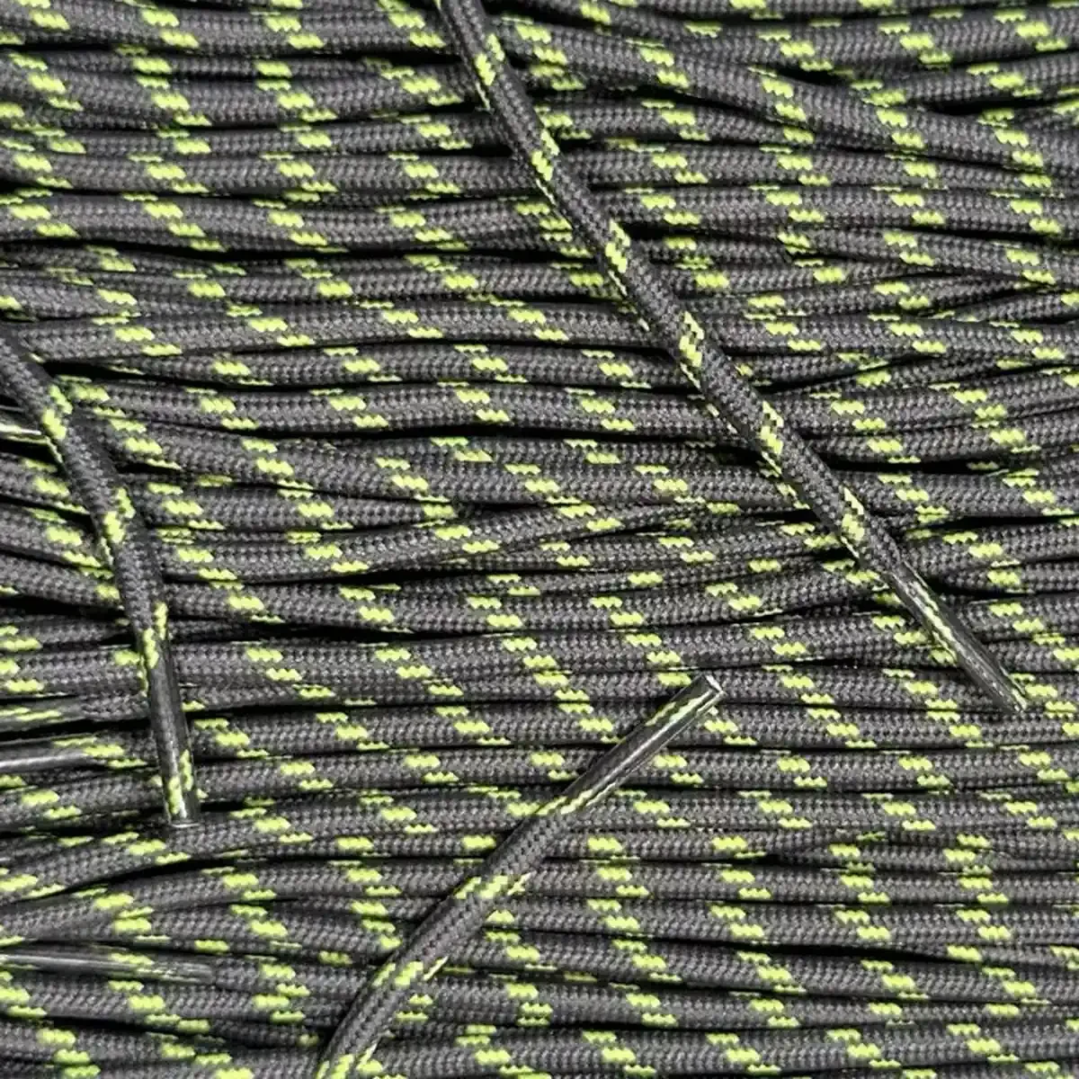 Deze donkergrijze neongroene veters zijn een praktische keuze voor outdoor schoenen.